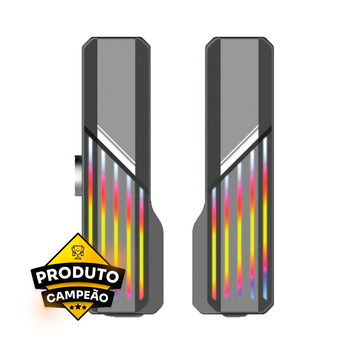 A Soundbar Gamer Knup R0820 proporciona uma experiência sonora imersiva ao conectar-se facilmente a PCs, notebooks ou celulares via cabo P2 ou Bluetooth. O destaque é sua deslumbrante iluminação LED RGB, oferecendo uma variedade de efeitos visuais pulsantes, estáticos ou sincronizados com o áudio. Isso permite personalizar seu ambiente gamer para uma experiência mais envolvente. Além disso, a Knup R0820 pode ser usada em duas partes ou combinada em uma única unidade, adaptando-se ao seu espaço disponível.